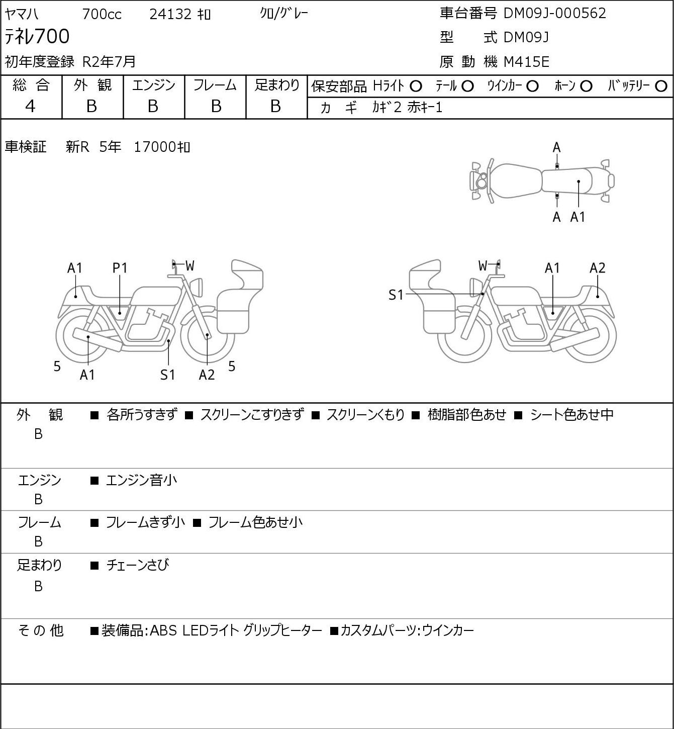 Повреждения могут быть от легких (1) до серьезных (3). Общая оценка данного аукциона, если сравнивать ее с оценкой BDS, выше примерно на один балл (3 по JBA/Aucnet эквивалентны 4 баллам по BDS).