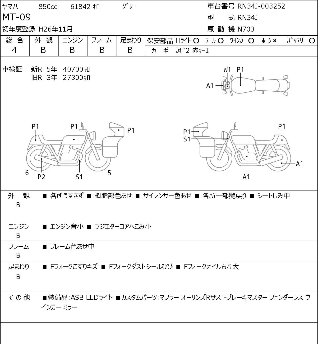 Повреждения могут быть от легких (1) до серьезных (3). Общая оценка данного аукциона, если сравнивать ее с оценкой BDS, выше примерно на один балл (3 по JBA/Aucnet эквивалентны 4 баллам по BDS).