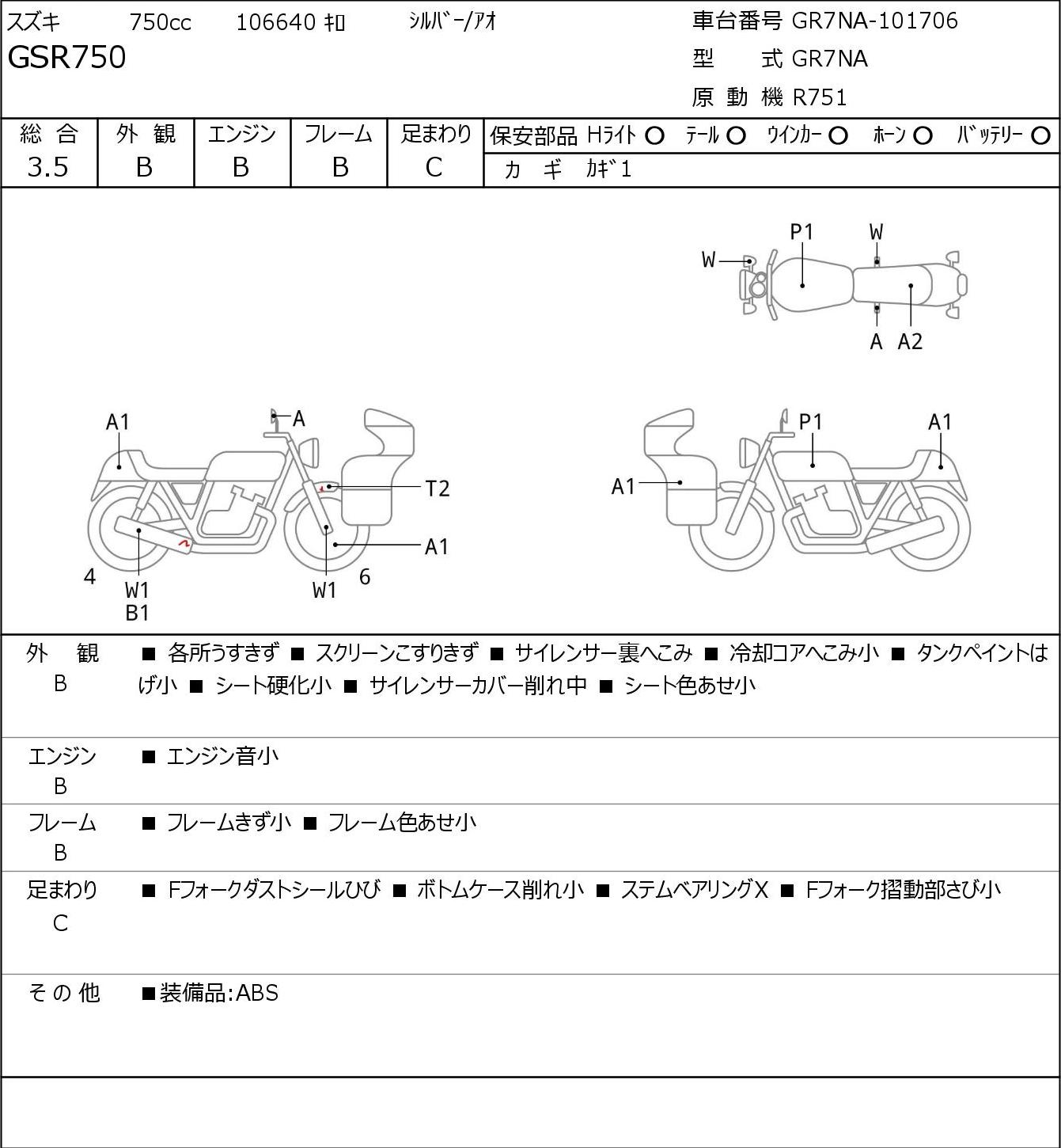Повреждения могут быть от легких (1) до серьезных (3). Общая оценка данного аукциона, если сравнивать ее с оценкой BDS, выше примерно на один балл (3 по JBA/Aucnet эквивалентны 4 баллам по BDS).