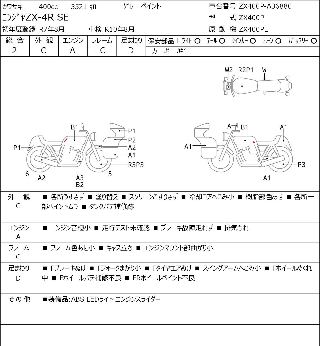 Повреждения могут быть от легких (1) до серьезных (3). Общая оценка данного аукциона, если сравнивать ее с оценкой BDS, выше примерно на один балл (3 по JBA/Aucnet эквивалентны 4 баллам по BDS).