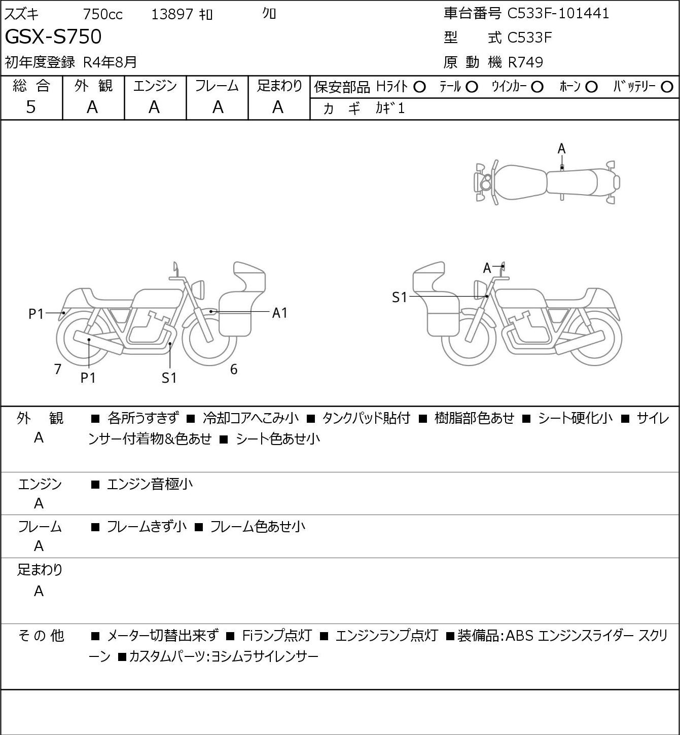 Повреждения могут быть от легких (1) до серьезных (3). Общая оценка данного аукциона, если сравнивать ее с оценкой BDS, выше примерно на один балл (3 по JBA/Aucnet эквивалентны 4 баллам по BDS).